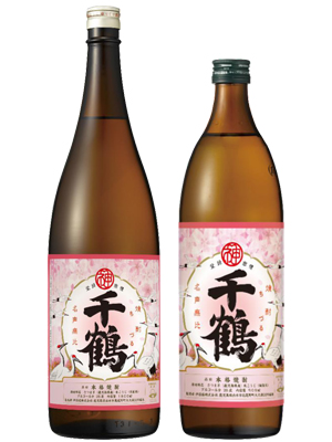 ピンク色の春らしいラベルの「春千鶴」は日本酒の「ひやおろし」の製法と似ており、秋に仕込まれた「新酒」を敢えて「春」まで
