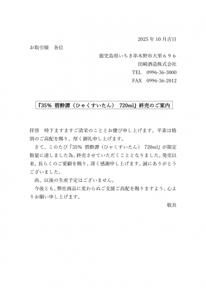 終売時期2025年11月末頃(在庫が無くなり・・・