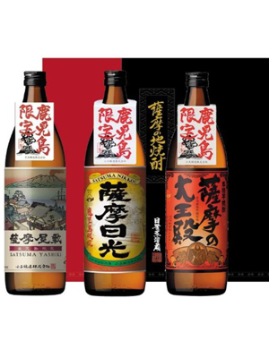 鹿児島限定で人気の芋焼酎「薩摩屋敷」「薩摩日光」「薩摩の大王殿」の3銘柄がセットになりました。