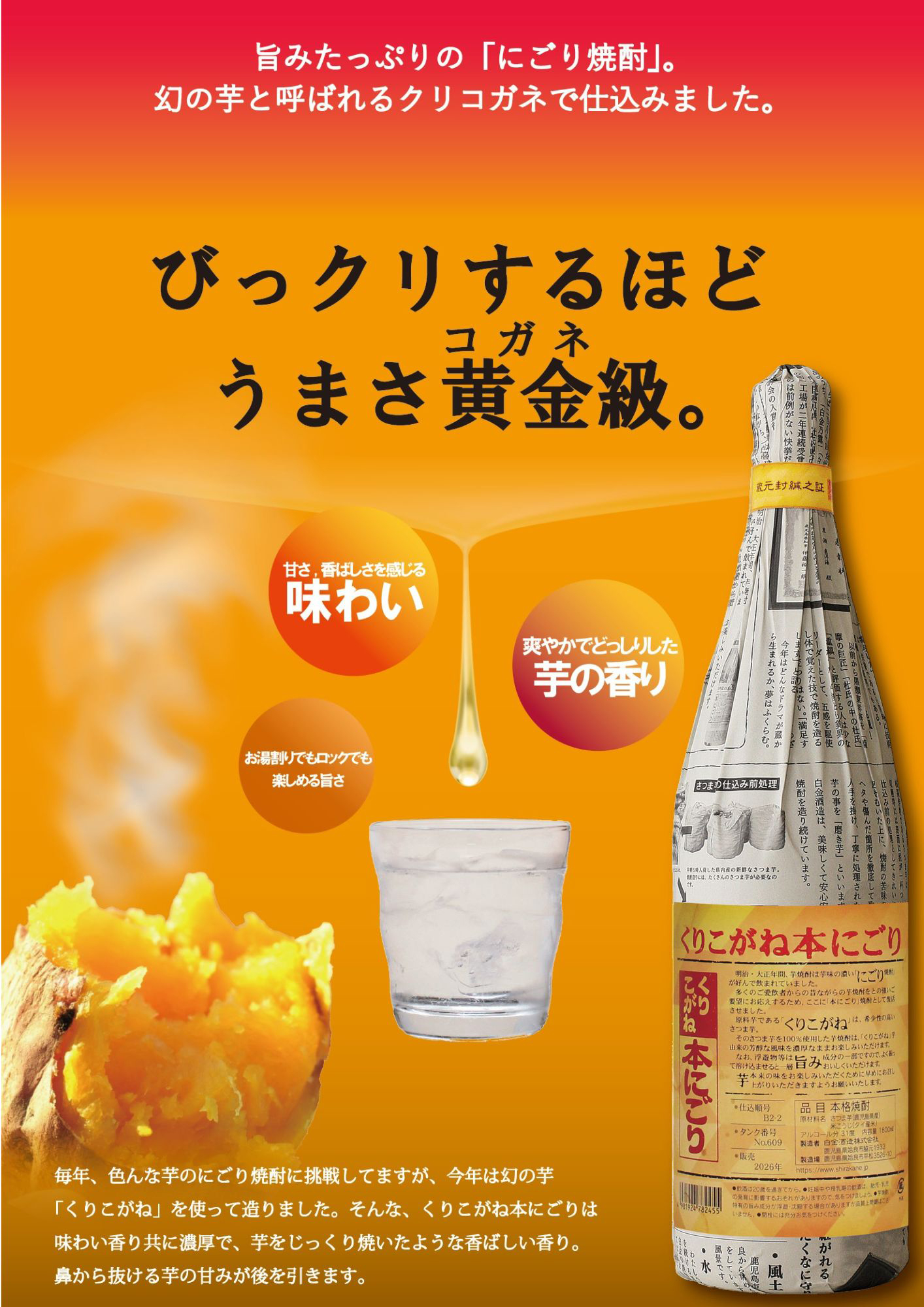 白金酒造様の「磨き芋仕込+にごり+稀少品種の甘藷」にマッチする