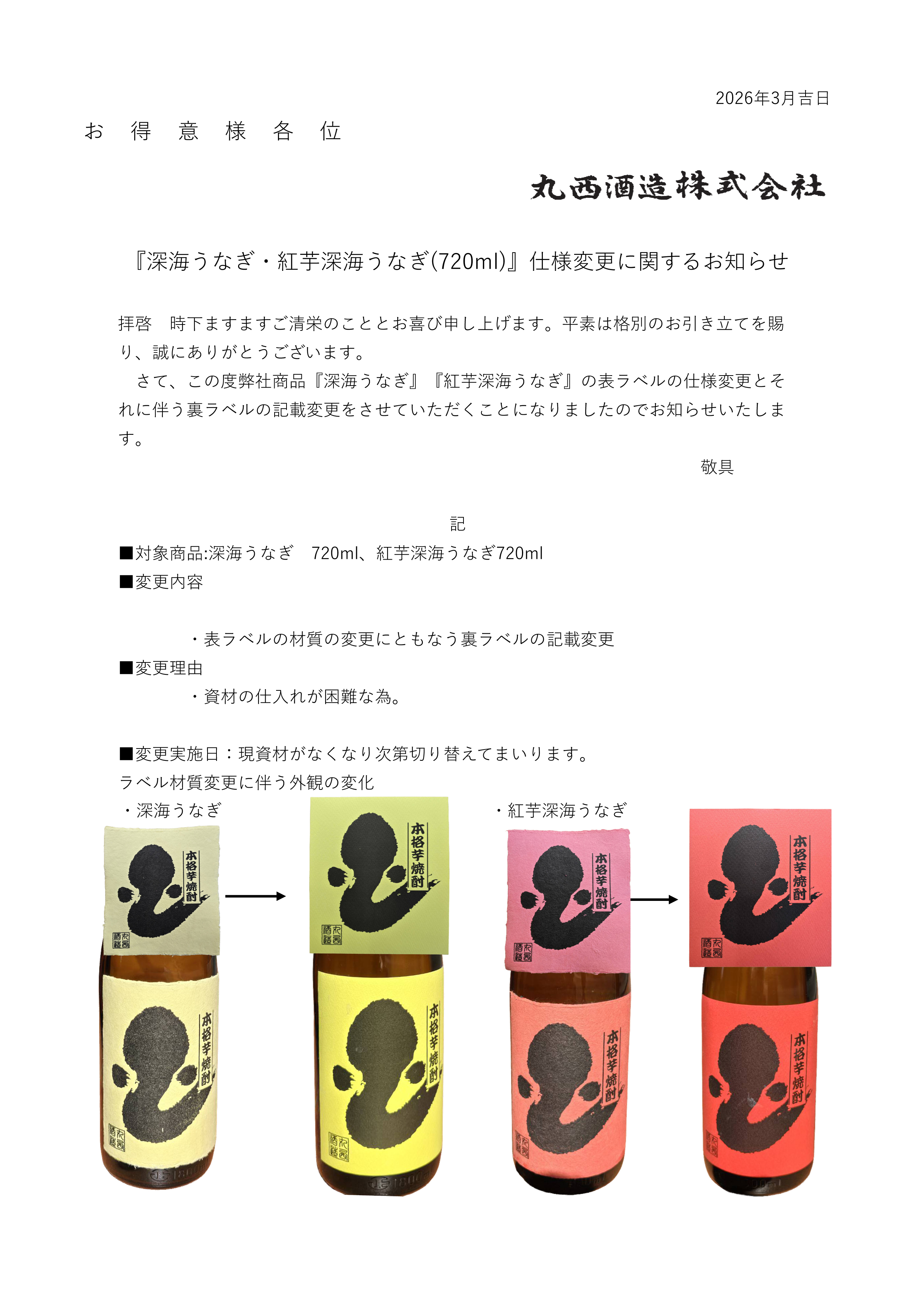 > 【資材変更】丸西酒造「深海うなぎ」シリーズ